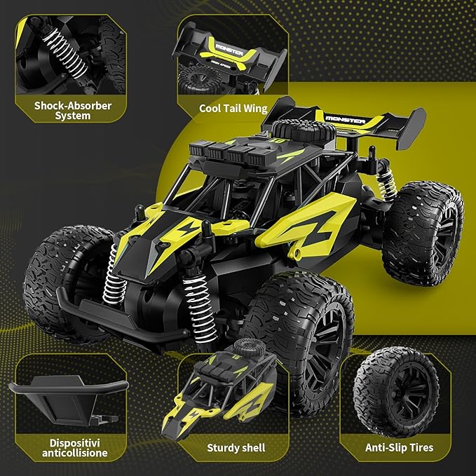 Carox 1:16 Scale RC Car for Kids, 2.4GHz High-Speed Electric Monster Truck, 20km/h, Dual 1000mAh Rechargeable Batteries, All-Terrain Tires, Shock Absorbing Suspension, Ideal Gift for Boys Aged 6-12