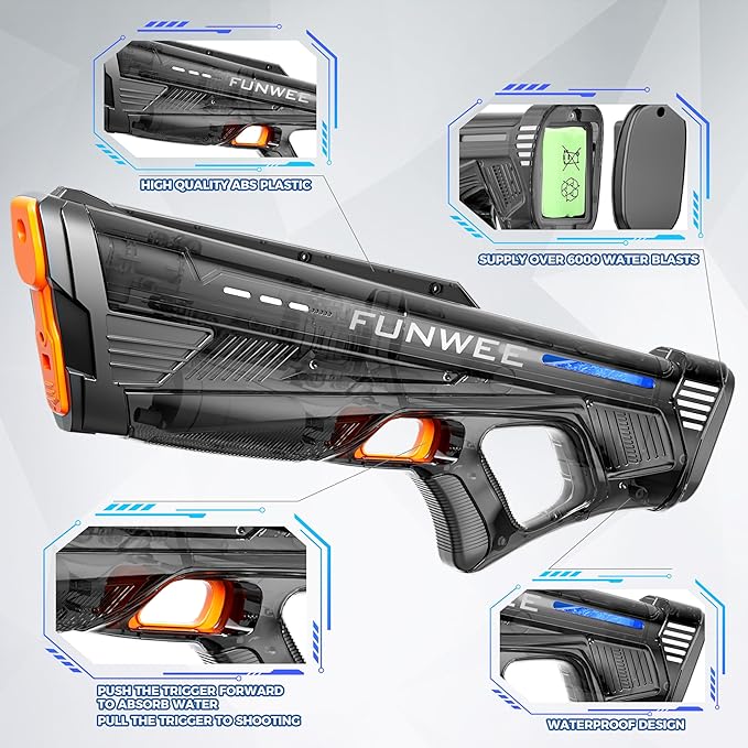 • 【2025 NEW UPGRADED Squirt Watergun】New upgraded battery operated transparent summer watergun electric with new appearance & more interesting functions.