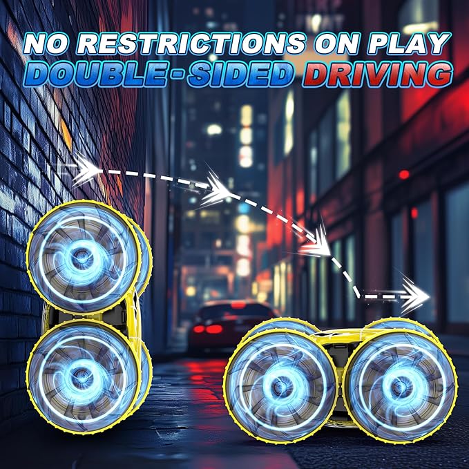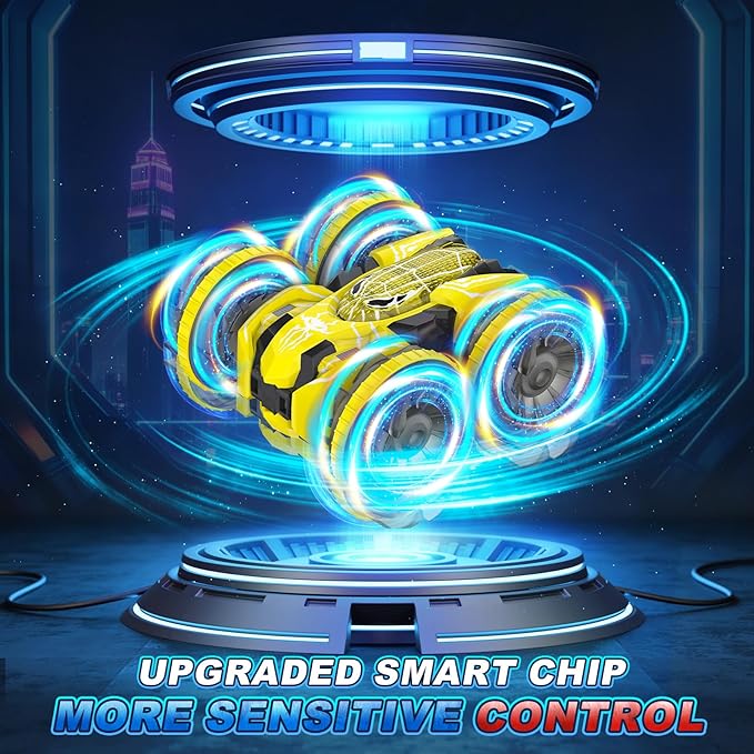 - Powerful Performance: Equipped with a high-efficiency motor, it provides strong driving force, enabling the RC stunt car to sprint quickly. On land, it supports 360-degree rotation and 180-degree reversal, realizing bidirectional driving. In the water, it can also rotate 360 degrees. This unique design makes the driving experience more abundant, and it can easily handle both straight-line racing and complex obstacles.