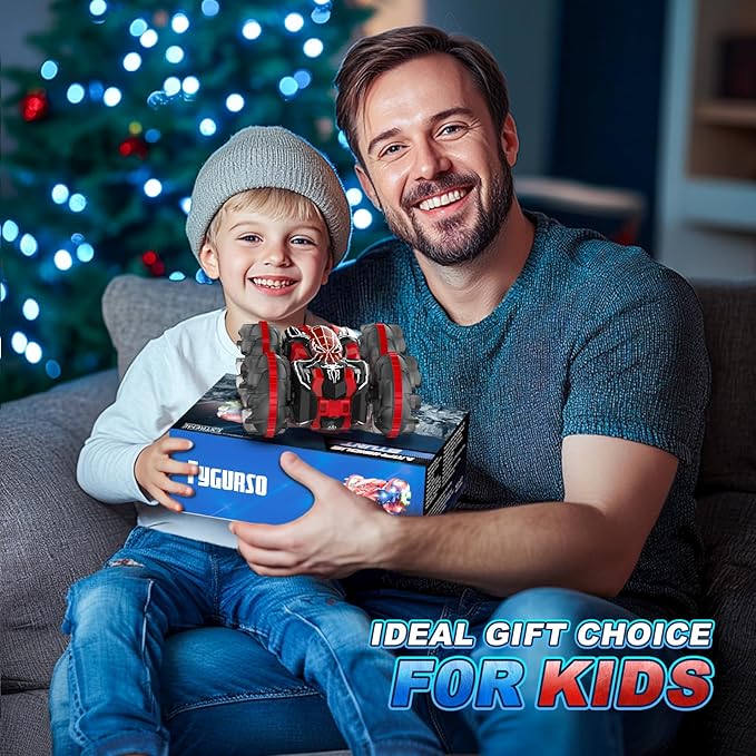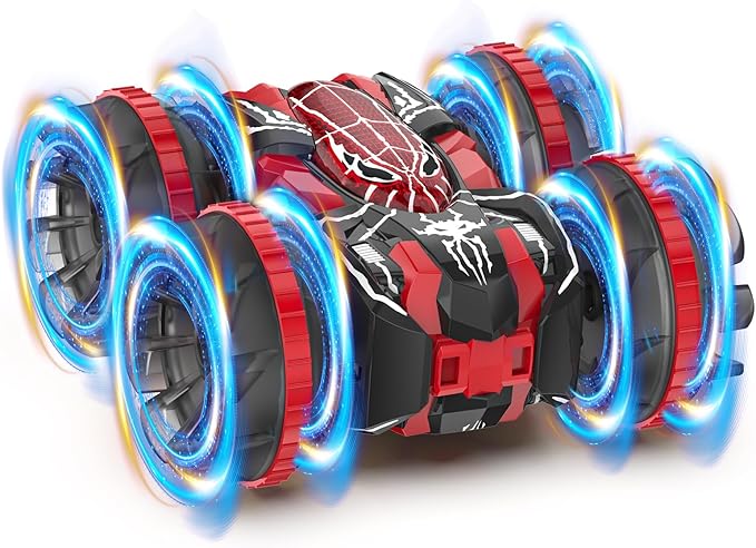 - Powerful Performance: Equipped with a high-efficiency motor, it provides strong driving force, enabling the RC stunt car to sprint quickly. On land, it supports 360-degree rotation and 180-degree reversal, realizing bidirectional driving. In the water, it can also rotate 360 degrees. This unique design makes the driving experience more abundant, and it can easily handle both straight-line racing and complex obstacles.