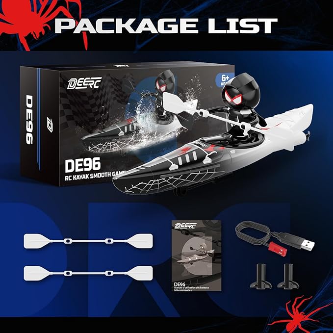 DEERC Remote Control Boat for Kids,RC Spider Kayak Boat Toys for Pool,Lake,Bathtub with Light Summer Outdoor Water Toys Never Capsize Gift for Kids Boys Girls