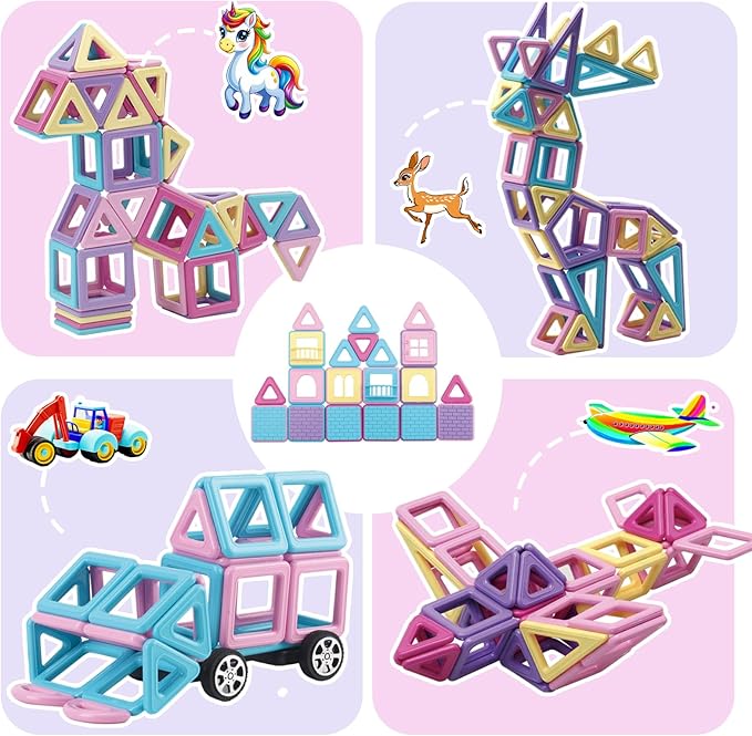 • Children express their creativity by building everything from simple towers to complex structures using magnetic blocks.