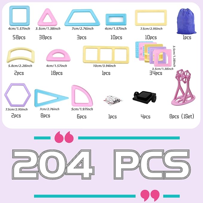 ASOK 204PCS Magnetic Building Blocks Magnetic Tiles Kids STEM Learning Toys for 3 4 5 6 7 Years Old Boys and Girls