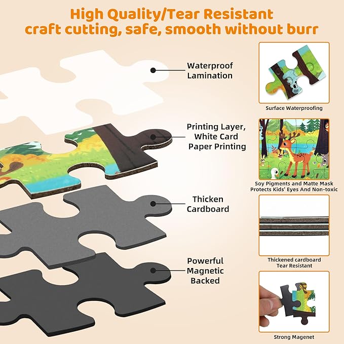• MAGNETIC PUZZLES FOR TODDLERS 3-5: Our magnetic puzzles feature strong soft magnets that securely connect the puzzle pieces even on-the-go. The 12-piece puzzles are the ideal size for small hands and measure 6.9'' x 6.9'' each.
