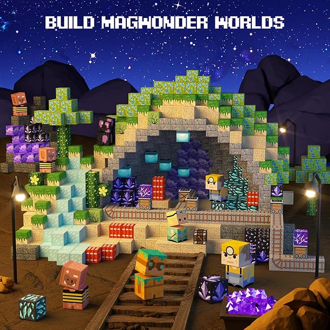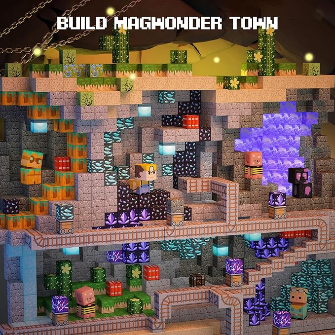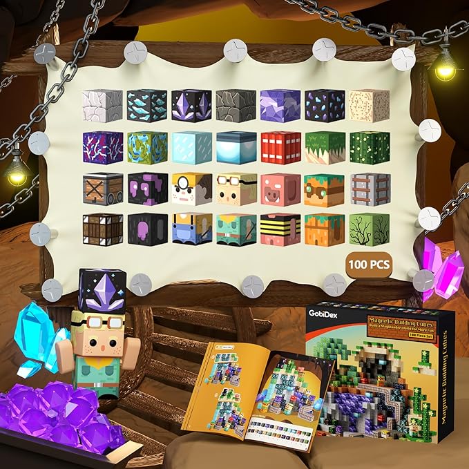 - Immersive Mineral Adventure: Bring boundless delight with GobiDex Gemfire Hollow Themed Magnetic Blocks! 100PCS of building cubes include rocks, amethysts, ores, railway parts, lake pieces, discoverer figures, and cute monsters to create joy-filled moments as kids construct their own captivating mining world. Each block is highly durable, ensuring long-lasting and engaging play