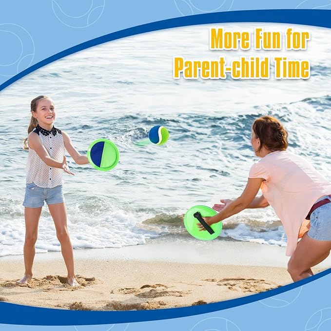 - Upgraded Toss and Catch Ball Set: In this toss and catching ball set, the paddles are waterproof and the balls have better stickiness. The wrist straps on the back of the paddles are adjustable, making them suitable for both kids and adults. The balls are also more durable and less likely to burst compared to the old version of the set.