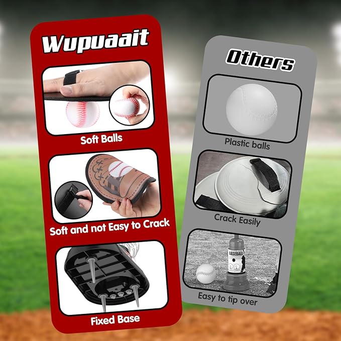 - More Stable Durable: The tee ball stand comes with fastening nails, and the top is equipped with a flexible spring bracket, making it more sturdy and not easy to tip over. Meanwhile, our baseball toys are made of thicker ABS material, stronger and firmer, this ensures that the children can train at full capacity