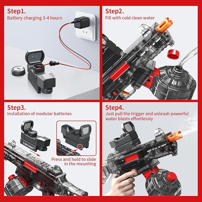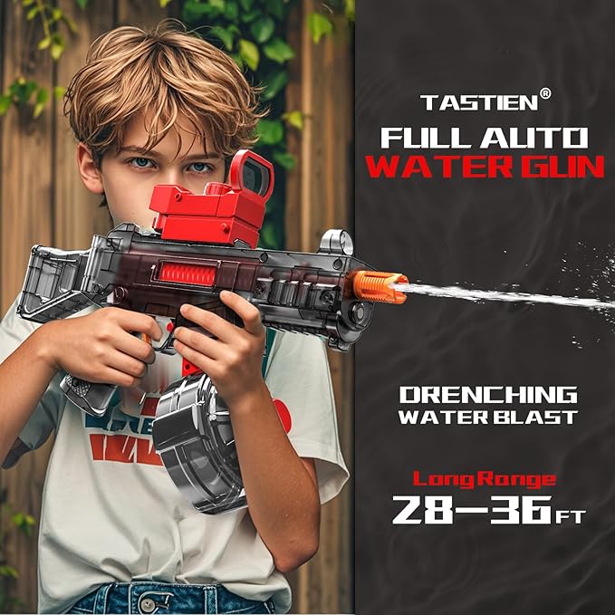 • 2025 Upgraded Electric Water Gun: Experience ultimate water battle fun with TASTIEN electric squirt gun! It features an innovative fast mechanical linkage firing mechanism that creates a huge splash instantly. Drench everyone with powerful pulse bursts as you pull the trigger!
