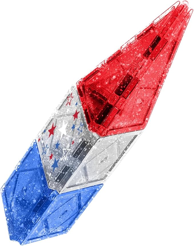 CreateOn Crayola Red, White & Blue Magnetic Tiles 14pc, Building Set for Kids, Magnetic Toy, Travel Toys, Classroom Sensory Toy Blocks, STEM & Montessori Tools for Boys & Girls Ages 3+, 14-Piece Set