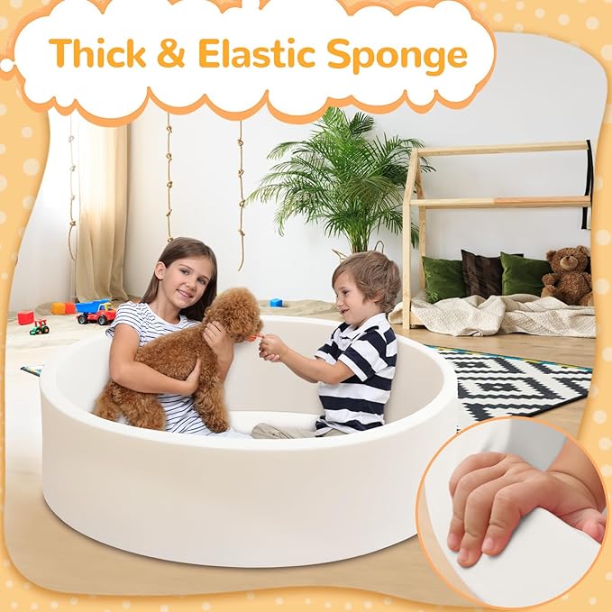 Baby Ball Pit 47.2" Soft Round Memory Foam Ball Pits NOT Included Balls Indoor Outdoor Playpen for Babies Toddlers Kids Great Gift for Girls Boys, White