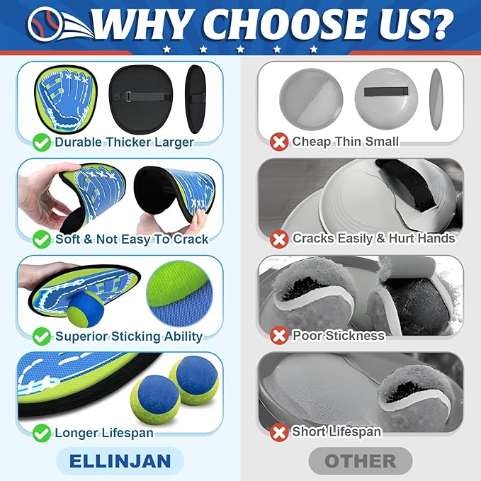 - Adjustable Fit for All Ages: Designed with an adjustable, stretchy strap, our catch game set ensures a comfortable fit for hands of all sizes—perfect for both kids and adults. This engaging game helps children develop hand-eye coordination, concentration, and arm strength, making it a fun way to stay active and healthy. Whether at kids’ gatherings, camping trips, or family playtime, this game guarantees endless outdoor fun for everyone