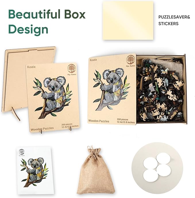 Wooden Puzzles for Adults, Koala Jigsaw Puzzles 200 Pieces, Unique Shaped Puzzle for Adults and Kids, Christmas Birthday Gift Family Game 12.4 x 12.6 Inch
