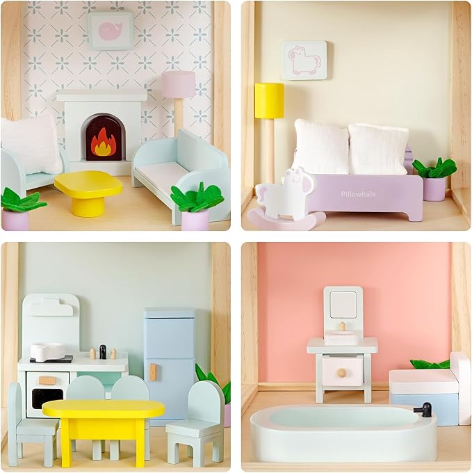 • Perfect Gift for Little Dreamers: This wooden dollhouse makes an unforgettable gift for birthdays, holidays, or any special occasion. With its elegant design, fun features, and educational value, it is a timeless present that children will cherish for years