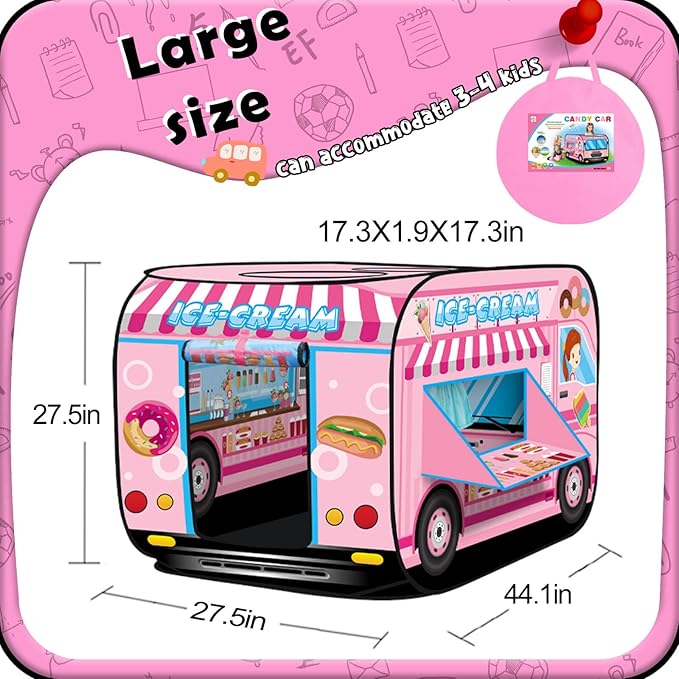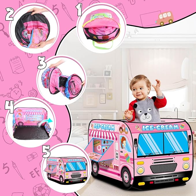 Pop up Play Tent for Kids Aged 1-3 Years Old Boys and Girls : Ice Cream Playhouse Toy Play Tents for Toddlers 3-5 Kids Tent Indoor Outdoor Playhouse Toys for 1 + Year Old, Ice Cream