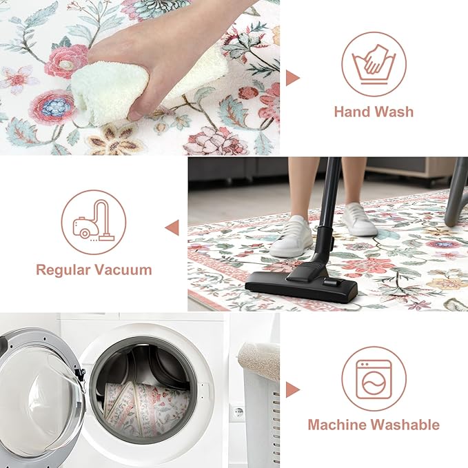 • Easy to Clean Washable Rug: You can easily wipe it clean with a damp cloth or sponge, or use a vacuum as daily cleaning. For a deeper clean, simply toss in the washing machine on a gentle cycle with cold water with no bleach, air dry low to keep the color