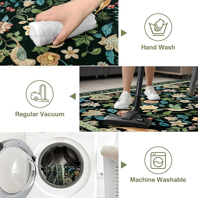 - Easy to Clean Washable Rug: You can easily wipe it clean with a damp cloth or sponge, or use a vacuum as daily cleaning. For a deeper clean, simply toss in the washing machine on a gentle cycle with cold water with no bleach, air dry low to keep the color