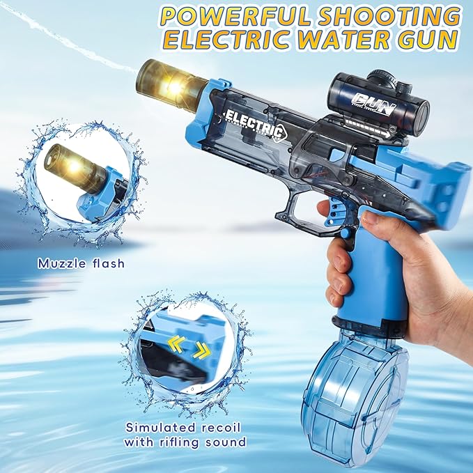Electric Water Gun with Muzzle Flash & Recoil Effect,500CC High Capacity Automatic Squirt Guns,Up to 32 FT Range for Swimming Pool Party Beach,Outdoor Activity for Adults & Kids(Blue)