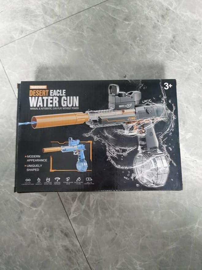 - Rechargeable Water Gun: Long range electric water gun can be used for 1 hour when fully charged. Pull the trigger of the electric water gun, feel the powerful impact of the high pressure jet water gun, transparent design visible automatic return, and simulated rifling sound. You can also manually spray the water gun when there is no power. Whether there is no electricity, you can enjoy, will be the fun of water war to the end