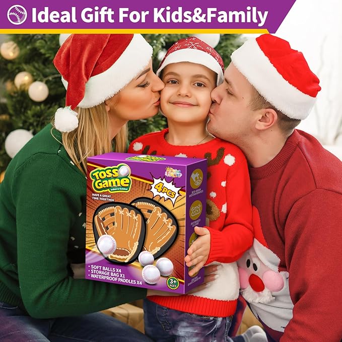 - 【Outdoor Sport Game Toy】This outdoor toys for toddlers 3-5 bulk perfect for outdoor time, camping, pool or beach it's also ideal for indoor play.The stick baseball glove and ball set comes with 4 durable paddles, 4 soft balls, and a storage bag for easy storage and carry.This exciting catch and toss ball set includes everything you need for endless fun!
