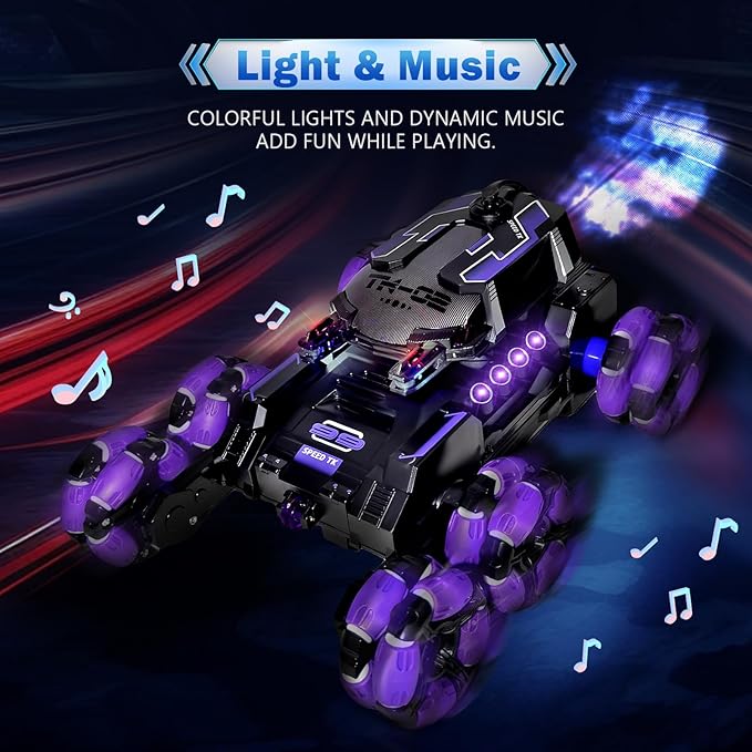 Gesture Sensing Remote Control Car Toys - Drift Hand Controlled RC Stunt Car for Kids, Birthday Gifts for Boys, with Spray Lights Music Double Sided Flip 360° Rotate Off-Road Cars
