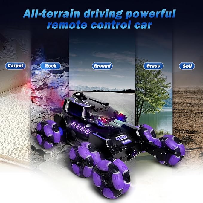 - 2.4 Ghz Dual Controller: This hand-controlled remote control car is equipped with a handle remote control and a gesture sensor watch. It utilizes the latest 2.4Ghz wireless anti-interference technology for stable signal transmission, allowing multiple cars to play at the same time without interference, allowing your children to experience the thrill of real racing and enjoy more driving fun