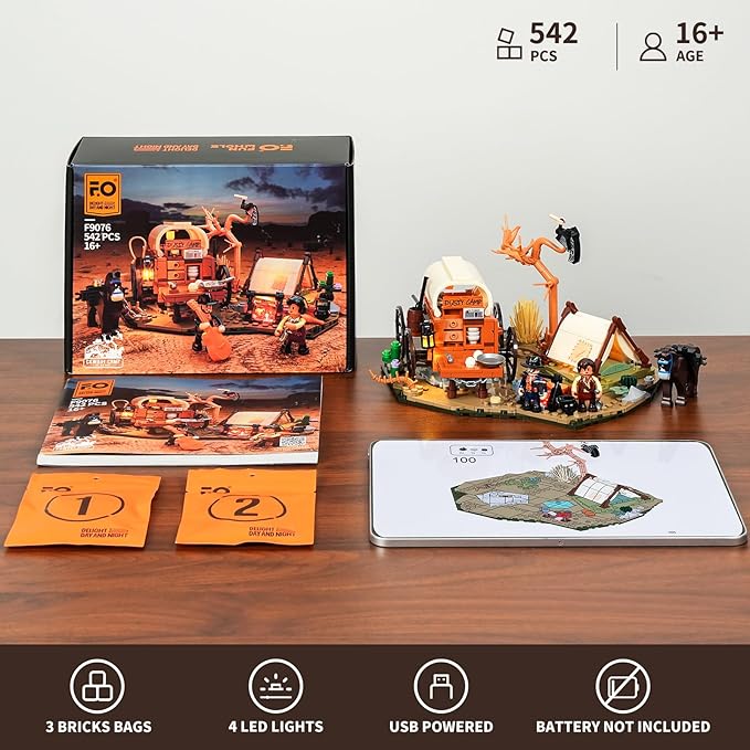 • Immersive scenes: Rollable iron-rimmed wagon wheels, sand-toned terrain bricks with scorpion prints, and canvas tents mimicking 1800s burlap—every texture pulls you deeper into the harsh beauty of frontier life.