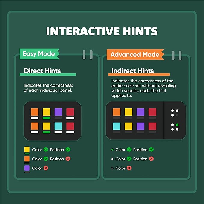 • SOLO AND DUO PLAY MODES: Play alone or switch to Duo Mode to take turns setting secret codes to challenge family or friends. Enhance family bonding time while breaking codes together!