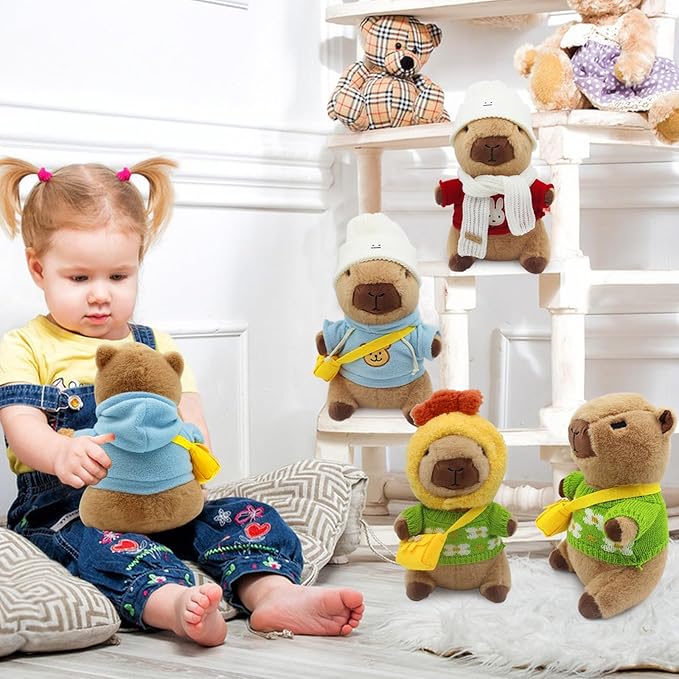 - Adorable Capybara Plush :This capybara plush dress up toy set comes with 11 pcs, includes 1 capybara, 1 scarf, 4 pieces of clothing, 2 hats, 3 bags, allowing kids to dress up their capybara in endless styles. Perfect for imaginative play, this set is a must-have for any child who loves animals and creativity.