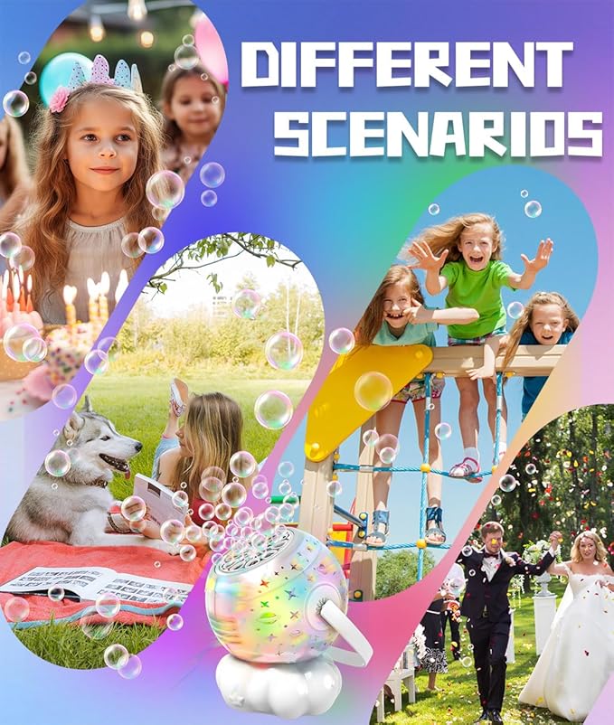 - Instant Party Starter - Wrap up joy! This bubble machine for toddlers and kids aged 3, 4, 5, and 6 doubles as a birthday, Christmas, or Easter gift. Durable, lightweight, and CPSC CE tested for safety, it’s a hit at holidays, school events, or sunny weekend adventures