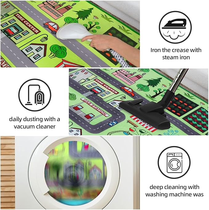 - 【WASHABLE KIDS PLAYROOM RUG】-Our large car rug play mat is very easy to clean and can be machine washed (in cold water) or vacuum cleaner. Your satisfaction is our priority. Feel free to message us through contact sellers if products don't meet your expectation