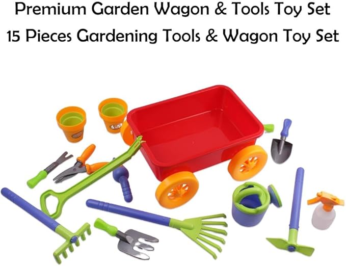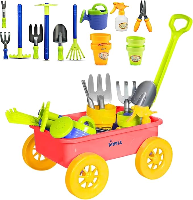 Dimple Garden Wagon & Tools Toy Set Premium 15 Pcs Kids Gardening Tools & Wagon Toy Set - Sturdy & Durable - Top Yd, Beach, Sand, Garden Play Set - Great for Kids & Toddlers