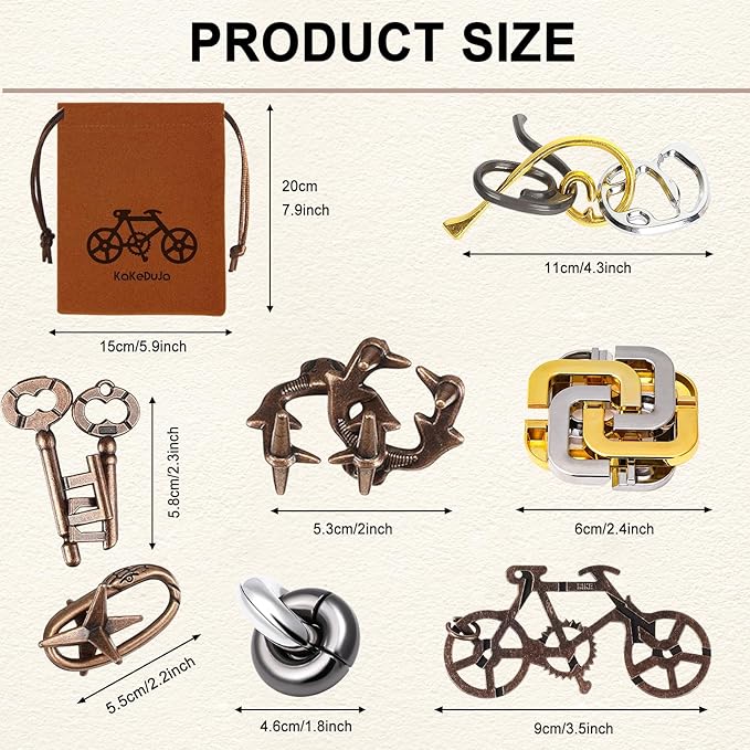 • 【EXQUISITE CRAFTSMANSHIP】Our mind puzzles for adults are made of high-grade metal, sleek to the touch, sturdy and secure, with no rough edges. Designed for durability, they can be enjoyed for years to come