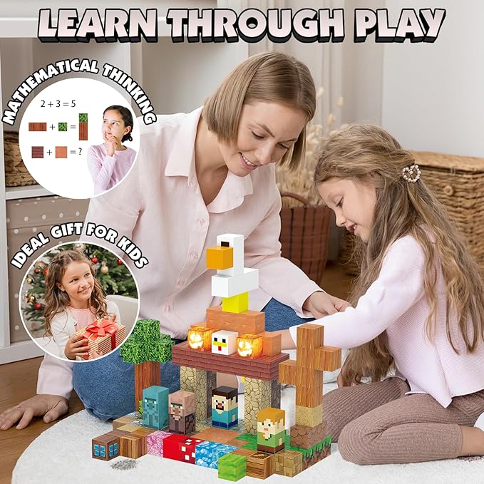 • 2PC with Light : Flip the switch, and the 2 glowing blocks light up, filling playtime with mystery. They're great for sprucing up farm, courtyard or any scene kids build