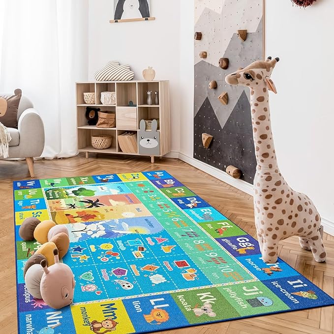 • Interactive Learning Spot: This nursery rug turns any room into a lively learning zone, engaging kids with ABCs, numbers, shapes, and seasons. Perfect for game rooms, bedrooms, playrooms, or classrooms, it makes early education fun and hands-on