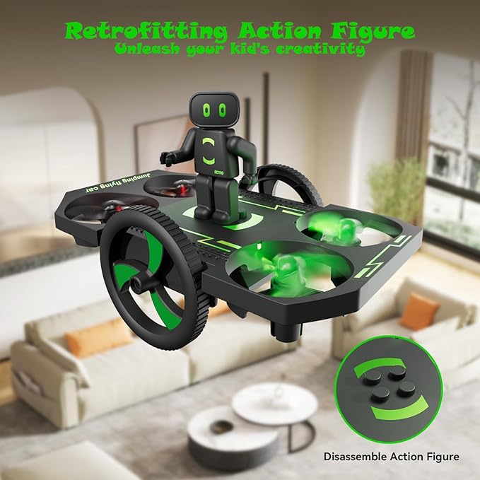- Dual-Mode Soaring Drone or Jumping Car--Experience the best of both worlds with this versatile mini drone that flies through the air or drives on land. Its two built-in wheels ensure smooth ground movement, while the jumping feature lets you leap over obstacles. For added excitement, try drifting to make every ride more thrilling!